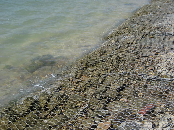 宾格网(石笼、石笼网箱、格宾网、生态网箱、格宾网箱、六角网箱、固滨网)由各种网孔规格的格宾网片按照ASTM A975-97规范组装而成。工程现场填充石料组装形成柔性的、透水的、整体的支挡结构,用于生态防护工程。网丝采用高镀锌钢丝或者10%铝锌合金钢丝,如果环境条件比较恶劣,污染比较严重,可以在钢丝的表面涂塑(PVC),以增强网丝的抗腐蚀性能。