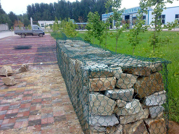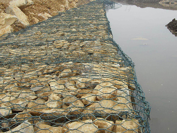 石笼网护垫分表面金属镀层和表面 PVC/PE涂层两个大类。使用的金属线径是根据六角形的大小而不同。生产过程是经织网,剪切,锁边,绑扎后制成石笼和护垫。石笼和护垫以折叠状态供货。