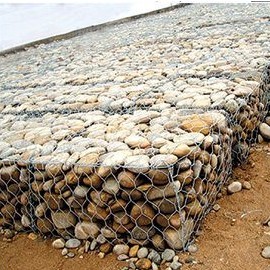 6、填充的卵石在河漫滩上选取,其抗压强度应满足规划要求,卵石粒径应在8~20cm之间,并要求大小分配合理以到达规划要求的孔隙度和保证石笼网的直线外形;