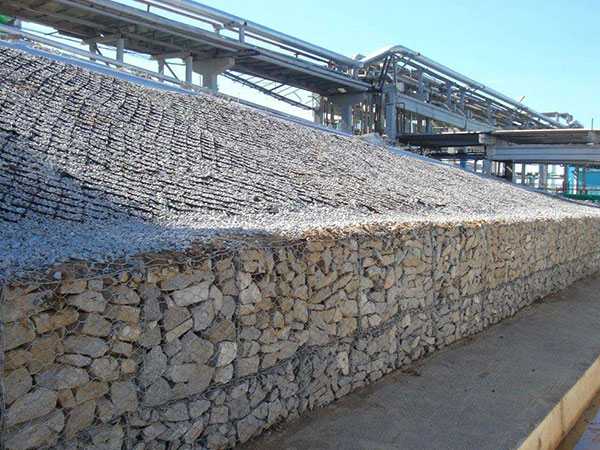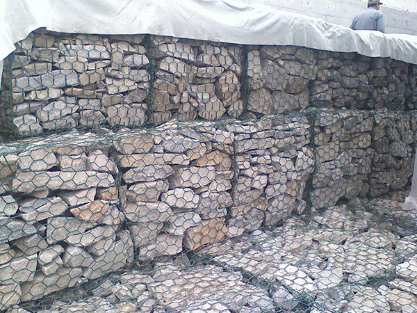石笼网是使填石固定就位的铁丝或聚合物丝网格式制作物。铁丝笼是由铁丝编织的网格或焊接而成的结构物。这两种结构可以是电镀的,编织的铁丝箱可另外涂上PVC。用抗风化坚硬石块作填料,它在石箱或石笼沉排中不会因磨蚀而很快破碎。装有不同类型的块石的石笼有不同的特性。多角的块石能相互很好地联锁在一起,用其填装的石笼不易变形。